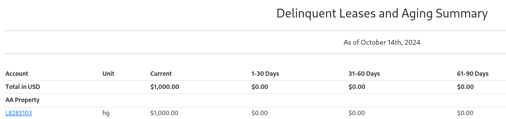 You can find leases by searching the Delinquent Leases report or Tenant Directory. Click the lease ID link to open the lease.