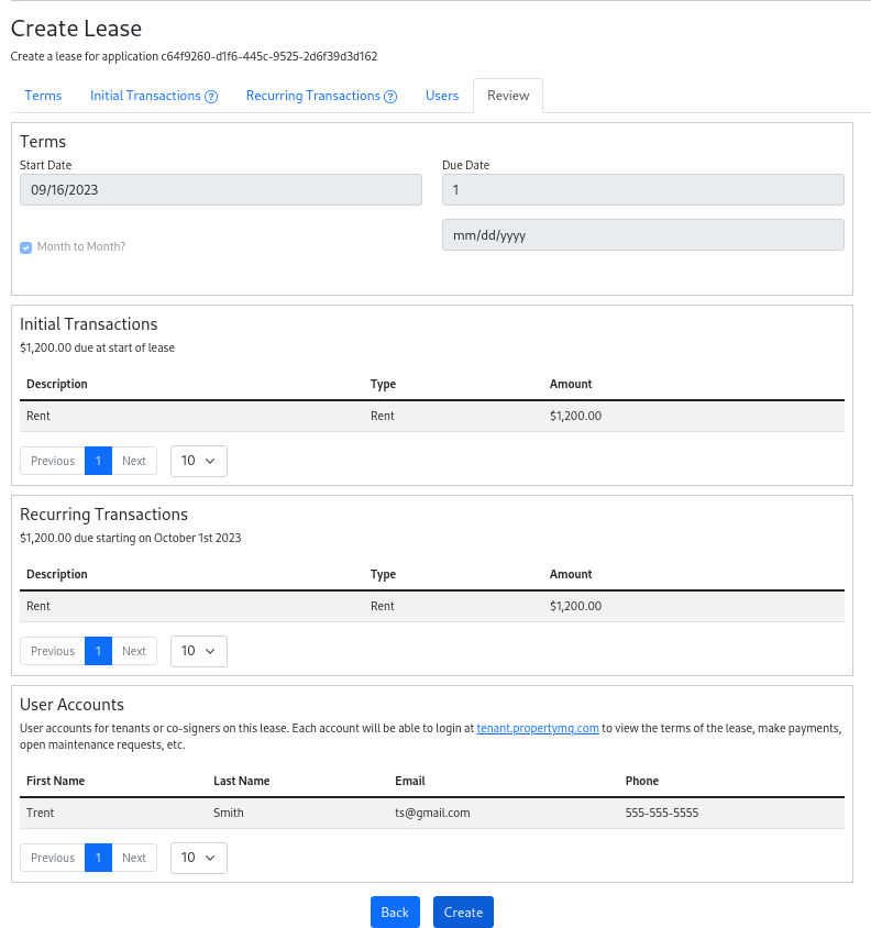 Leases are created from Applications. Please create one to start the Lease creation. Once your applications have been created it is time to accept an application and create a lease. Follow the steps below to search through applications and start taking incoming lease payments