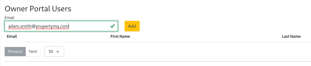At the bottom of the page is the Owner Portal Users where you can add emails to give an owner access. The owner portal is