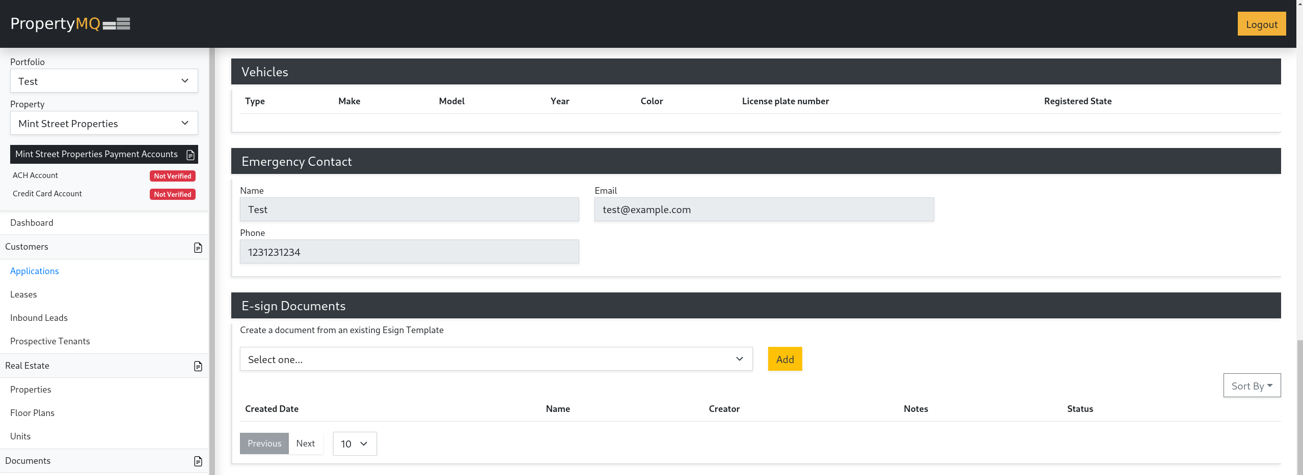 In the E-sign Documents section, there will be a dropdown menu that includes all the Published templates associated with the selected Property similar to the image below.