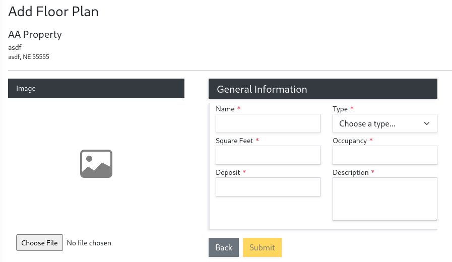 Follow the steps below to create a Floor Plan for your avaliable Units. These Floor Plans will be used to represent the type of units that your properties have avaliable for lease.