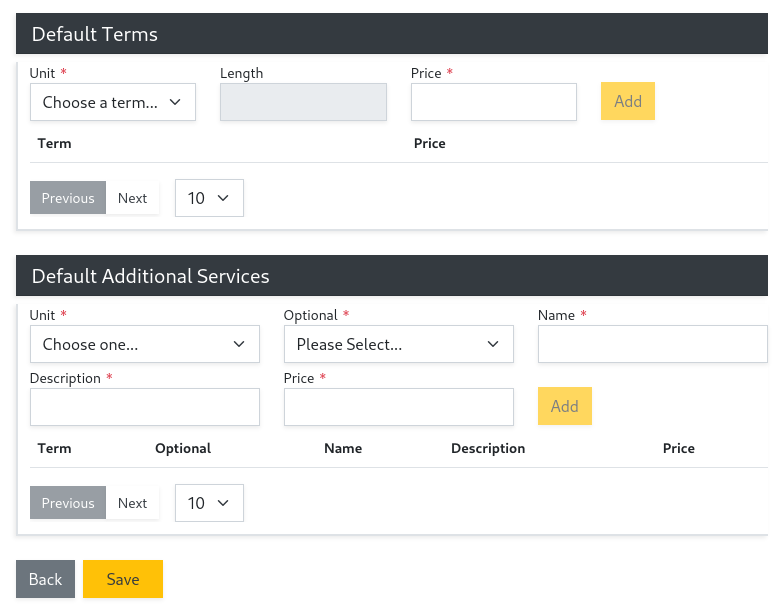 Click Submit to save the new floor plan. After submitting you will then have the option to set default terms and services for the floor plan. This is only needed if you use the Tenant Application feature to accept applications.